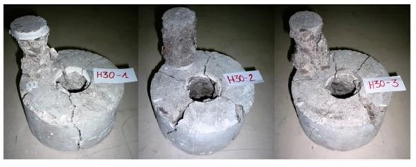 En un inicio, durante el proceso de diseño del ensayo, se pensó que el mecanismo de rotura para la formación del cono de hormigón durante la extracción del inserto, era el mismo que el que ocurre en los ensayos de compresión [27]. No obstante, aunque existe una cierta correlación entre los resultados de ambos ensayos, la investigación llevada a cabo en las últimas décadas no llega a definir adecuadamente el mecanismo de colapso interno en el bloque de hormigón asociado con el proceso de extracción del inserto metálico [32].
