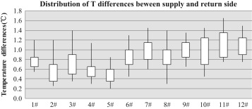 Fig. 9. Chilled-water temperature differences between supply and return side of each building. |