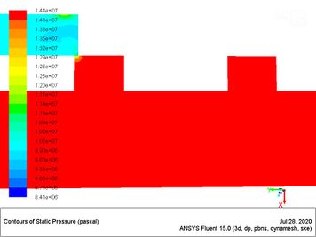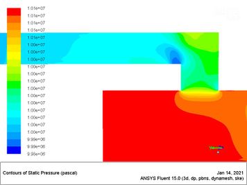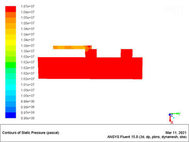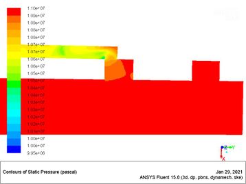 The same method is used to simulate the second channel and observe the pressure distribution of the fluid in the pipeline. The calculation results are shown in Table 5, and the analysis results of 10mm and 14mm openings are shown in Figure 12.