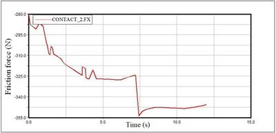 The ADAMS simulation analysis of the second channel is carried out in the same way. Through the simulation analysis, the friction between each sealing and the sliding sleeve is obtained, and the relevant data is extracted to calculate that the sum of dynamic friction is 2966N.