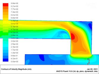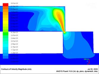 In the fluid simulation results, judged whether the fluent analysis converges according to the residual value detected and whether the mass, momentum and energy of the incoming and outgoing fluid are conserved in the flux reports dialog box.