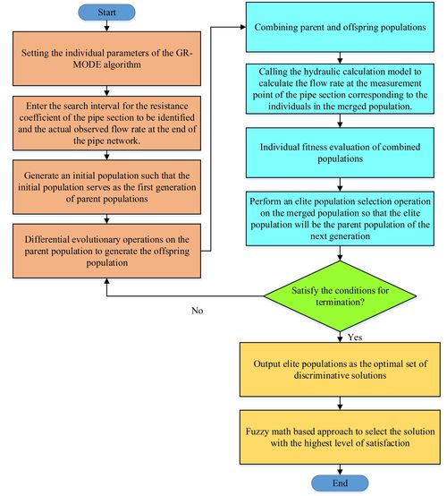 GR-MODE algorithm, which improves the evaluation method of individual fitness of single-objective algorithm, the evaluation criterion of optimizing populations for comparative ranking to adapt to high-dimensional multi-objective optimization problems, and adopts differential evolutionary algorithm as the evolutionary strategy of the algorithm, which improves the algorithm's global search ability and convergence. The resistance identification process based on the GR-MODE algorithm is shown in Figure 1.