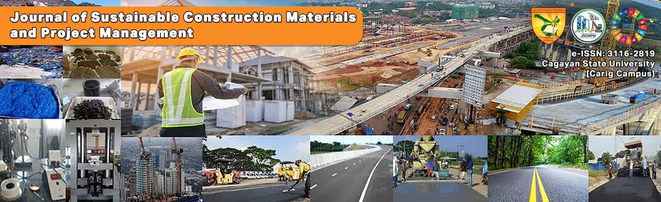 Published by Cagayan State University, Carig Campus. The Journal of Sustainable Construction Materials and Project Management (JSCMPM) is hosted and disseminated online via the SCIPEDIA publishing platform, ensuring broad, open access and global scholarly reach.
