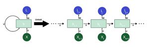 | − | + | [[File:RNN.jpg|thumb|'''(Figure 1)''' '''- RNN Model Visualization (Adapted from Gupta). '''Visual representation of the recursive nature of an RNN, both in a condensed and uncondensed form.]] | |