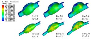 | + | <big>* Finite element for the simulation of problematic scenarios (aneurism, lumen obstruction, deformation, etc).</big> | ||