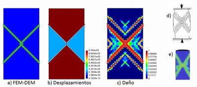 Otros aspectos importantes inherentes a la formulación FEM-DEM son el uso de un campo de esfuerzos suavizado, la conservación de la masa y el uso de un algoritmo simple para asegurar el contacto post-fractura entre las paredes de la grieta. Adicionalmente, la armadura de acero se considera embebida en la malla de elementos finitos, lo cual simplifica los cálculos.