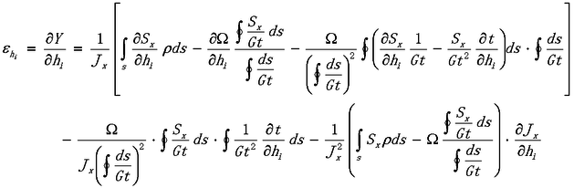 Where is reduction factor, is the thickness of skin which number is , is the sum area of all component cross section, and are coordinate value and coordinate value of centroid, respectively.