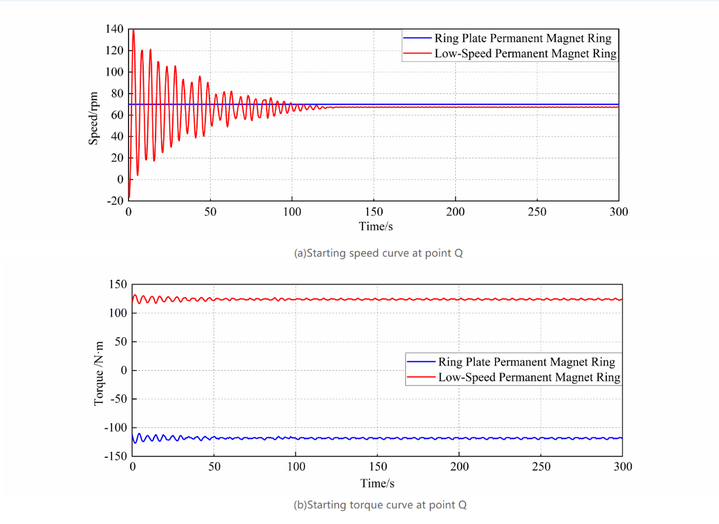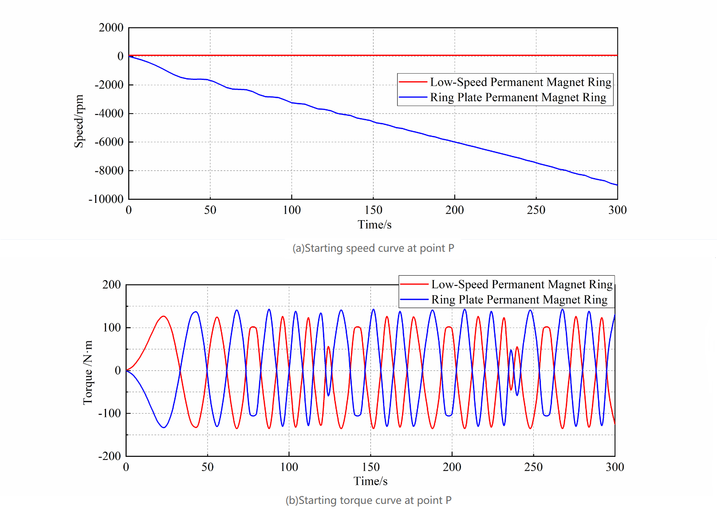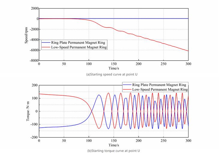 (3) If TRMG can be started successfully, the deceleration interval of low-speed permanent magnet ring should be minimized. and increase acceleration interval to achieve synchronous speed of coupled magnetic field.